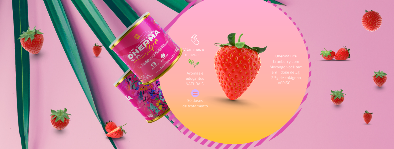 Dherma Life com Colágeno Hidrolisado Verisol® sabor Cranberry com Morango - 150g | 50 doses